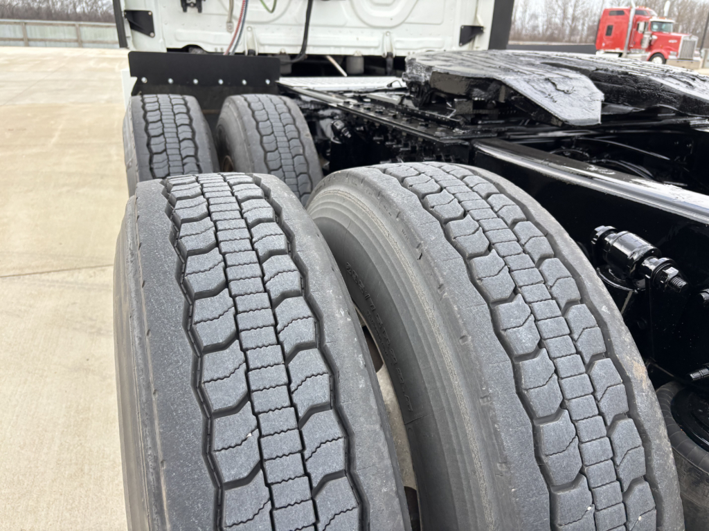 - Tire treads of at least 4/32 inch in the middle