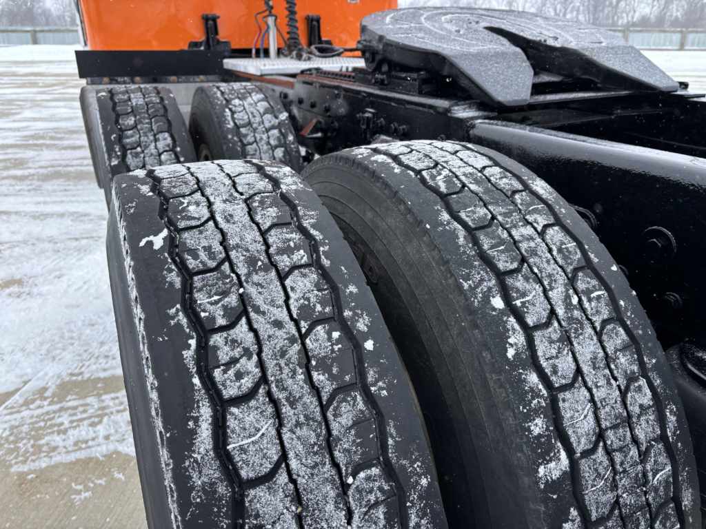 - Tire treads of at least 4/32 inch in the middle