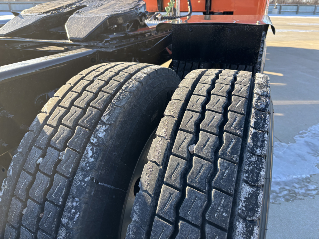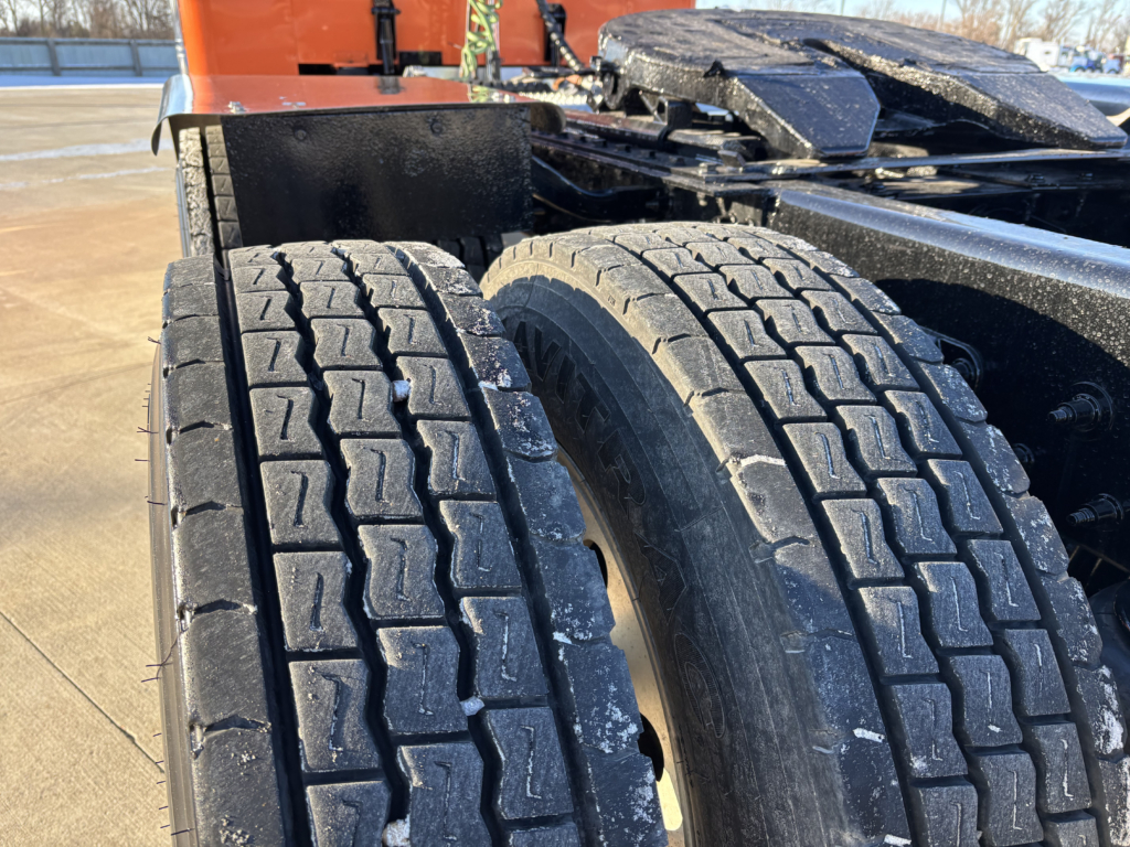 - Tire treads of at least 4/32 inch in the middle